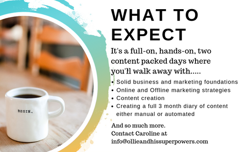 A hands on weekend of learning some sime things you need to do to develop your business in a cost effective and easy way that is specific to you.