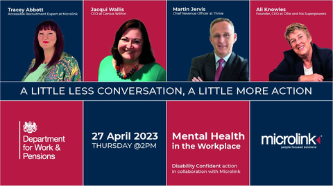 Microlink PC (UK) Ltd in collaboration with The @Department for Work and Pensions (DWP) will host a very exciting event on Thursday 27th April @2pm focusing on Mental Health in the Workplace.