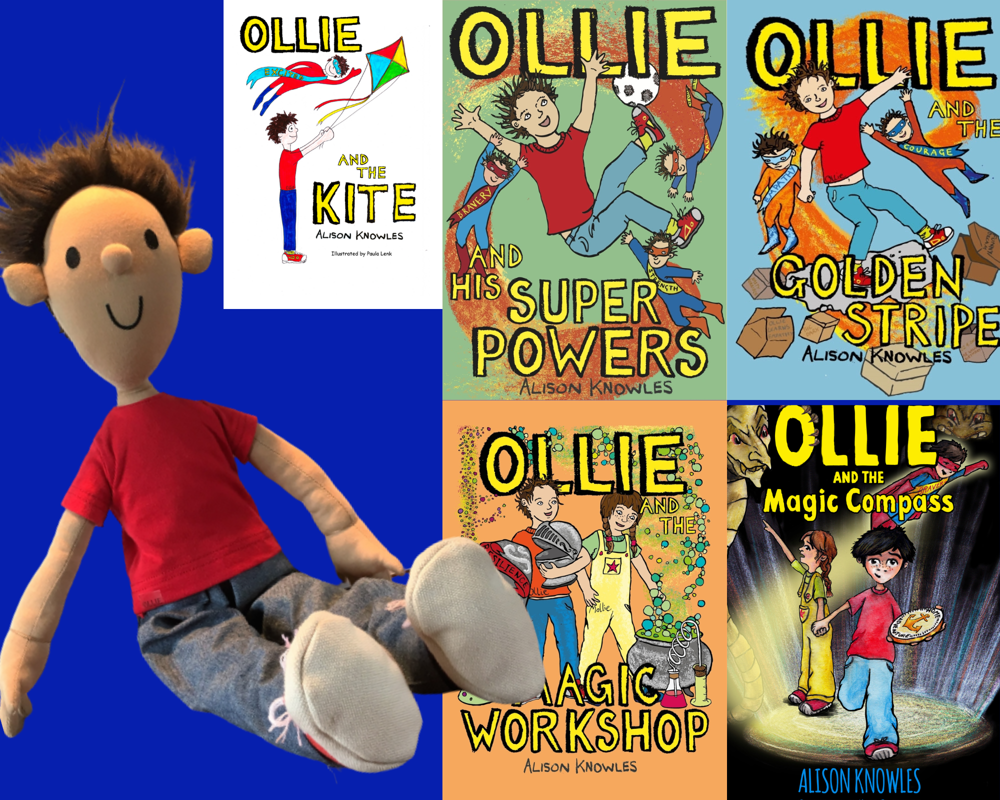 The full series of Ollie and his Super Power books written by Alison Knowles with an Ollie Toy.
